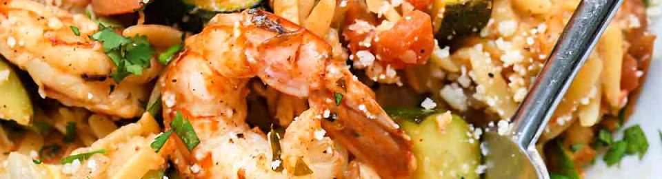 - Transfer the skillet to the oven and bake for 10-12 minutes or until the shrimp is done and the orzo is tender.